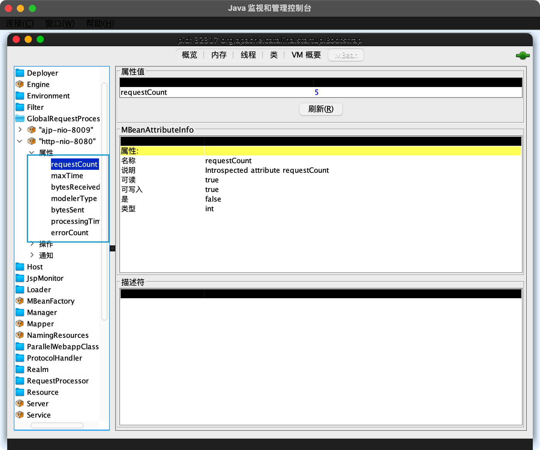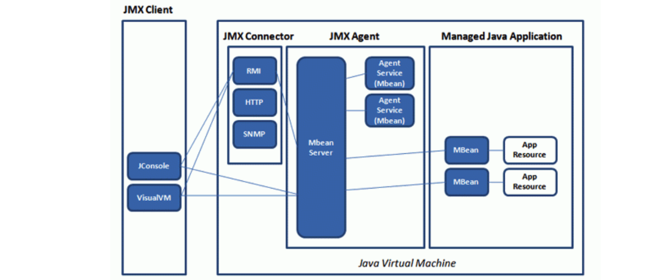 <font style="color:rgb(55, 53, 47);">Tomcat 可以通过 JMX 将上述指标暴露出来的。JMX(Java Management Extensions,即 Java 管理扩展)是一个为应用程序、设备、系统等植入监控管理功能的框架。JMX 使用管理 MBean 来监控业务资源,这些 MBean 在 JMX MBean 服务器上注册,代表 JVM 中运行的应用程序或服务。每个 MBean 都有一个属性列表。JMX 客户端可以连接到 MBean Server 来读写 MBean 的属性值。</font>