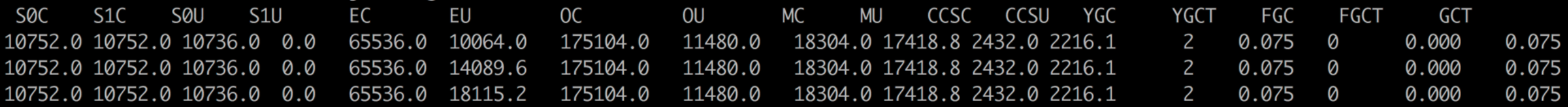 - <font style="color:rgb(55, 53, 47);">S1U:第二个 Survivor 区已使用内存的大小。</font>